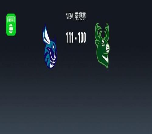 第四节黄蜂塞克斯顿拿下8分,雄鹿马克-西尔斯拿下7分,最终黄蜂111-100战胜雄鹿